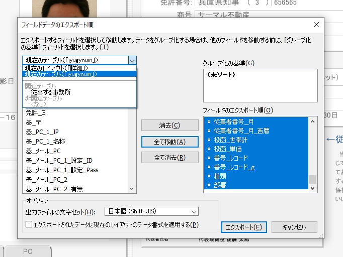 ・出力ファイルの文字セット:日本語(Shift-JIS)